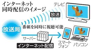 各局の関係者によると、同時配信は需要がある時間帯に限定する。日本テレビは10月開始を目指し、ゴールデンタイム(午後7~10時)やプライムタイム(同7~11時)で検討。テレビ朝日やTBS、フジテレビなども準備を進めている。