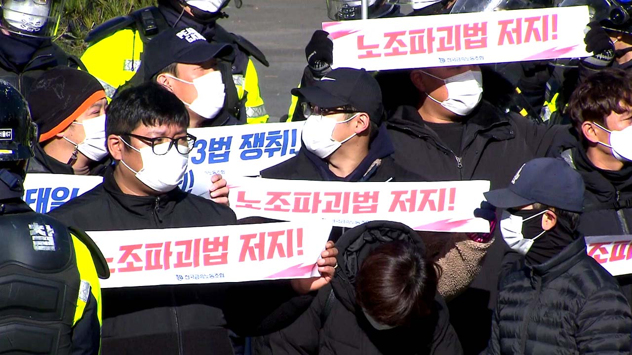 민주노총을 비롯한 노동단체가 노동법 개악을 저지하겠다며 국회 주변에서 산발적 집회를 열었습니다.